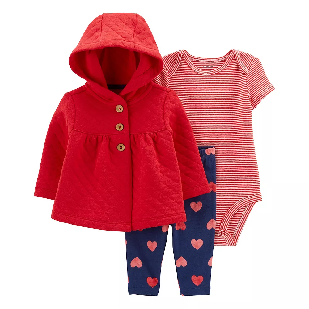 Give your little one an adorable look with this Baby Carter’s 3-Piece Quilted Vest Set.