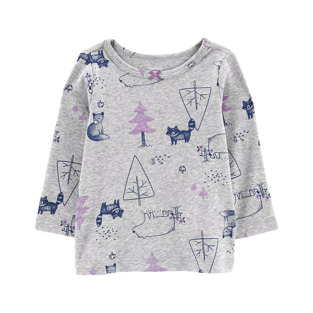 - Tee: crewneck with bow detail, long sleeve, allover woodland print