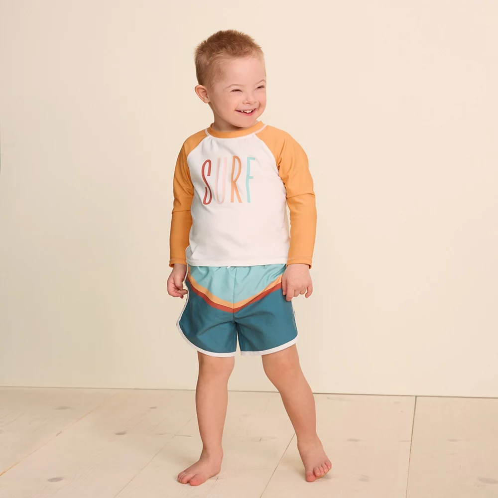 Your little one will make a splash in the sustainable style of these baby and toddler swim shorts.