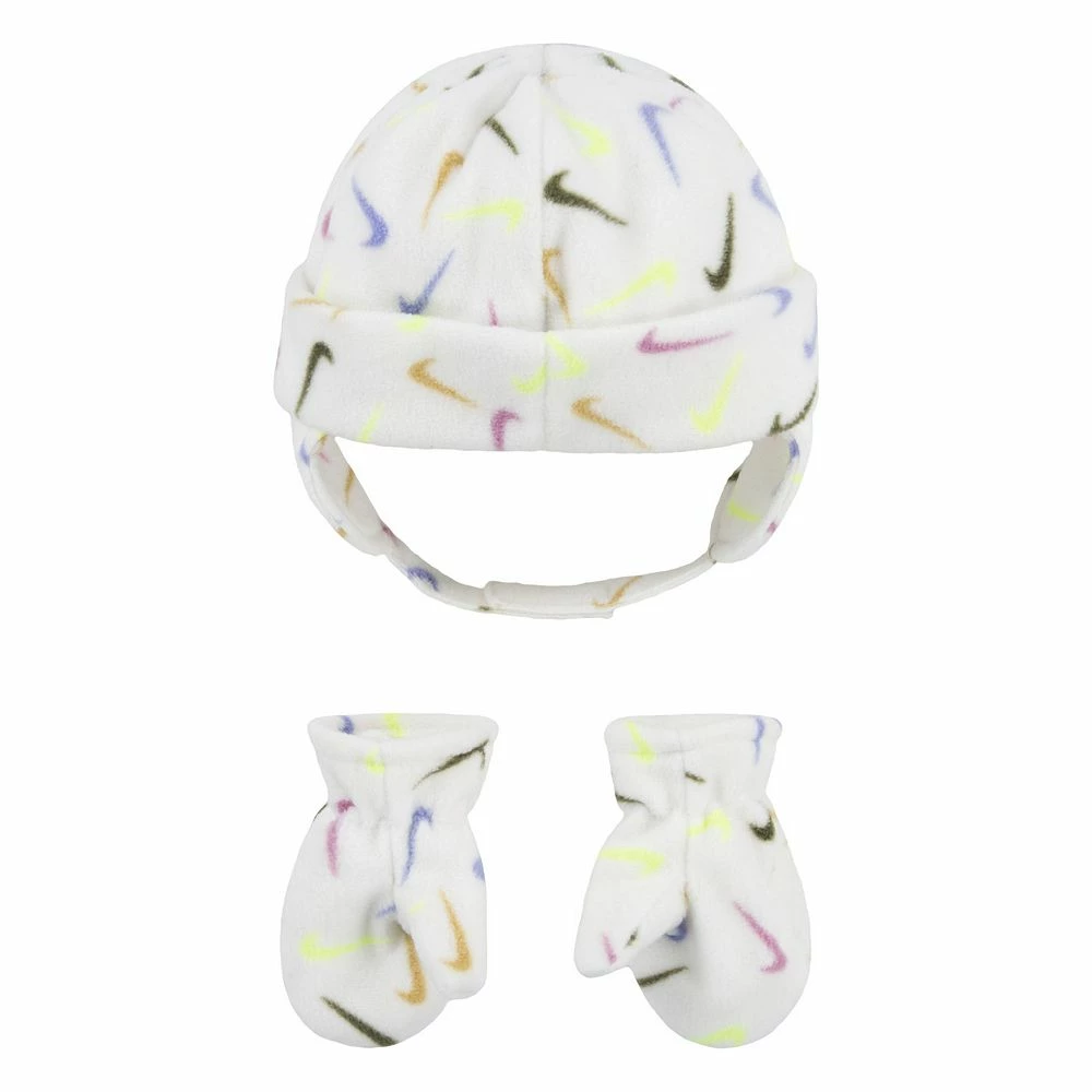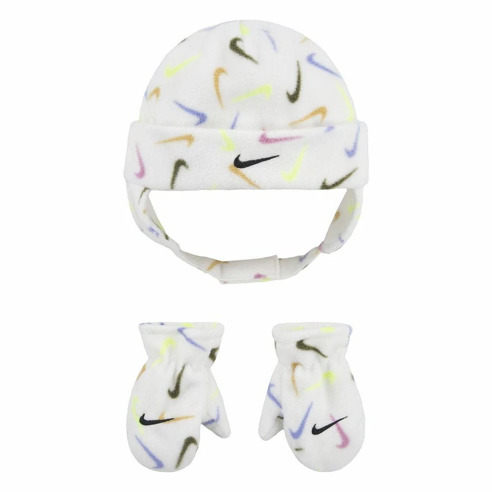 Keep your little one’s ears and fingers nice and warm while finishing off their winter ensemble in style with this toddlers’ fleece trapper hat and mittens set from Nike.